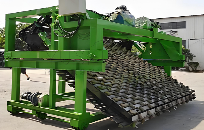 链板式翻堆机适用于畜禽粪便、污泥垃圾、秸秆等有机固体废弃物的槽式好氧堆肥。该机的行走系统采用变频调速、对不同物料的适应性较好且运行平稳、翻堆效率高、能进行深槽作业等优点,有效缩短发酵周期,提高生产效率及产品质量。采用变频调速速行走系统,能很好适应工作负荷的变化。可根据物料阻力情况,灵活调节行走速度,使设备有更强的适应性和灵活性。可选配移行车,实现多槽设备工用,在设备的能力允许条件下,只需增建发酵槽,即可扩大生产规模,提高了设备使用价值。